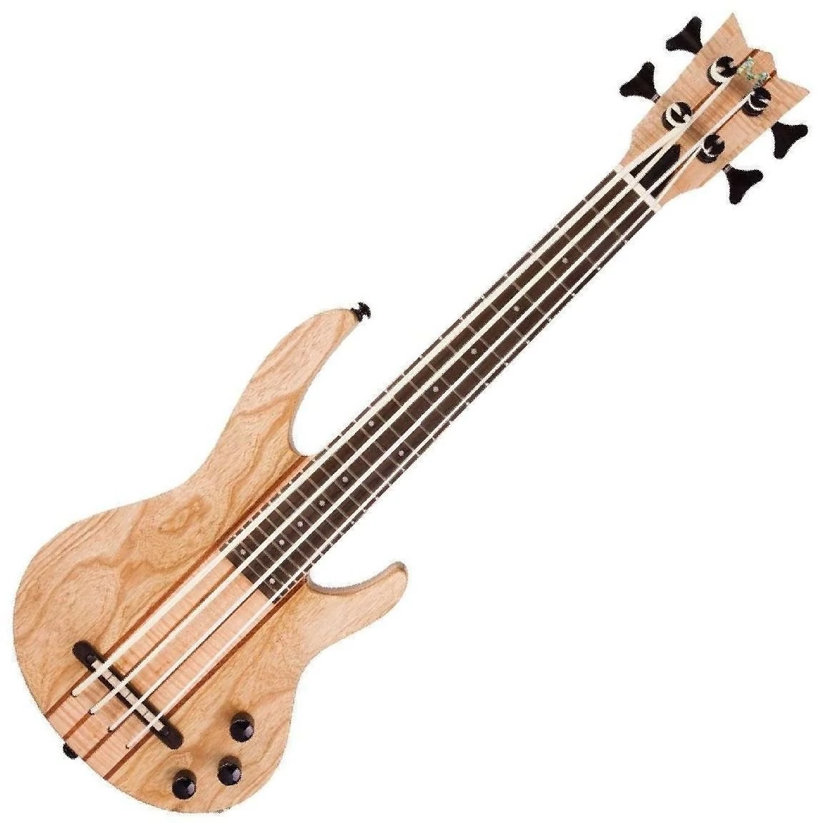 ukulele méretű elektromos basszusgitár, tartozék tok, nylon Aquila húrok, natúr kőrisfa