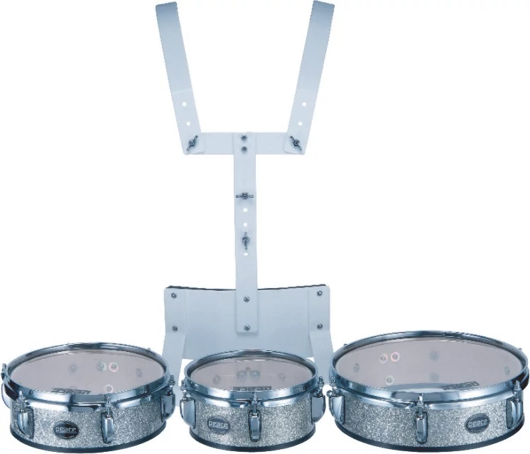 - The increasing popularity of marching bands and drum corps is apparent as more middle and secondary schools, youth groups, and other organizations develop marching programs. The broad interest in putting music in motion has opened up a new niche for a variety of marching percussion. Peaces new Mini Timbales are an especially versatile option. Possessing a wide tuning range, these compact shells are capable of producing the sound of real timbales, standard toms, or even RotoToms. An added benefit to the outfit is its low weight. Since the shells are only 3.5 deep, the instrument can be played comfortably by more players than standard tri-toms. The outfit includes Peaces adjustable MTC-1 aluminum carrier.