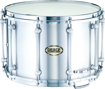 - Incorporating elements of Peaces Batterie Aluminum Artillery snare drums, the MD-1410 has aluminum shells that shout with a tight, dry tone. Fitted with high-tension Deus tube lugs for precise and slip-free tuning, the drum comes with die-cast hoops. Adaptable to Peaces marching snare carriers, this drum stands up to the elements with non-corrosive components for longevity.
