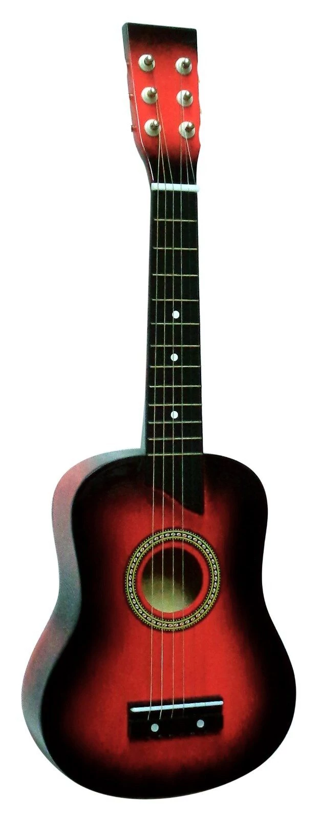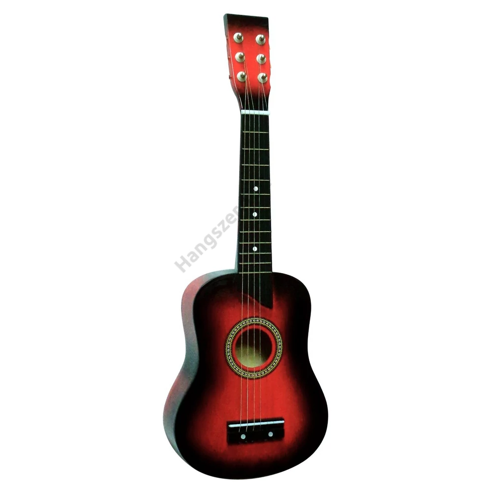 Német, fa, játék gitár fém húrokkal, precíz hangolókulcsokkal! Acél húrok 25″ méret – 64cm hossz gitár mechanikával Hársfából Szín piros-fekete szél (Redburst)