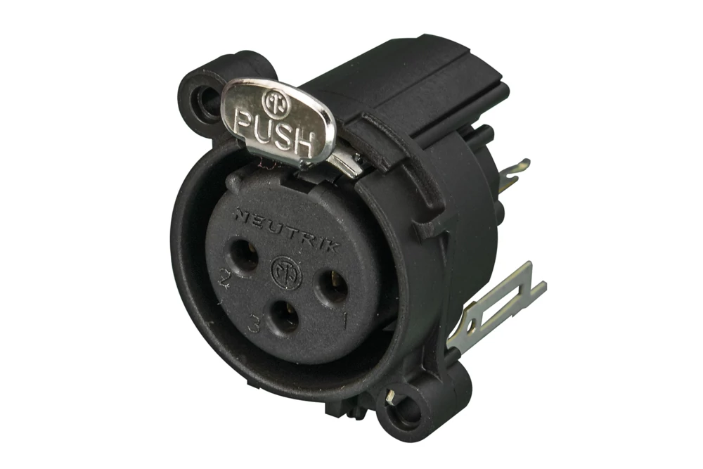 3 pólusú, anya XLR dugaszalj, földelés: külön föld kontakt a burkolat és az elülső panel között, vertikális PCB foglalat.