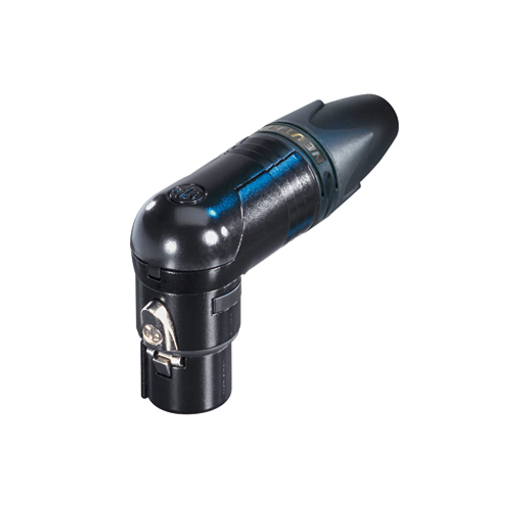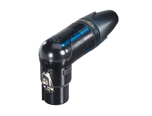 3 pólusú jobbra dőlő anya kábelcsatlakozó, fekete fémház, ezüst érintkezők.