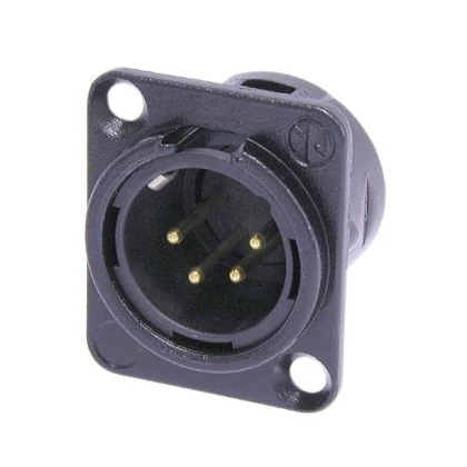 4 pólusú, apa dugaszalj, forrasztható harangszigetelő, fekete fémház, arany érintkezők.