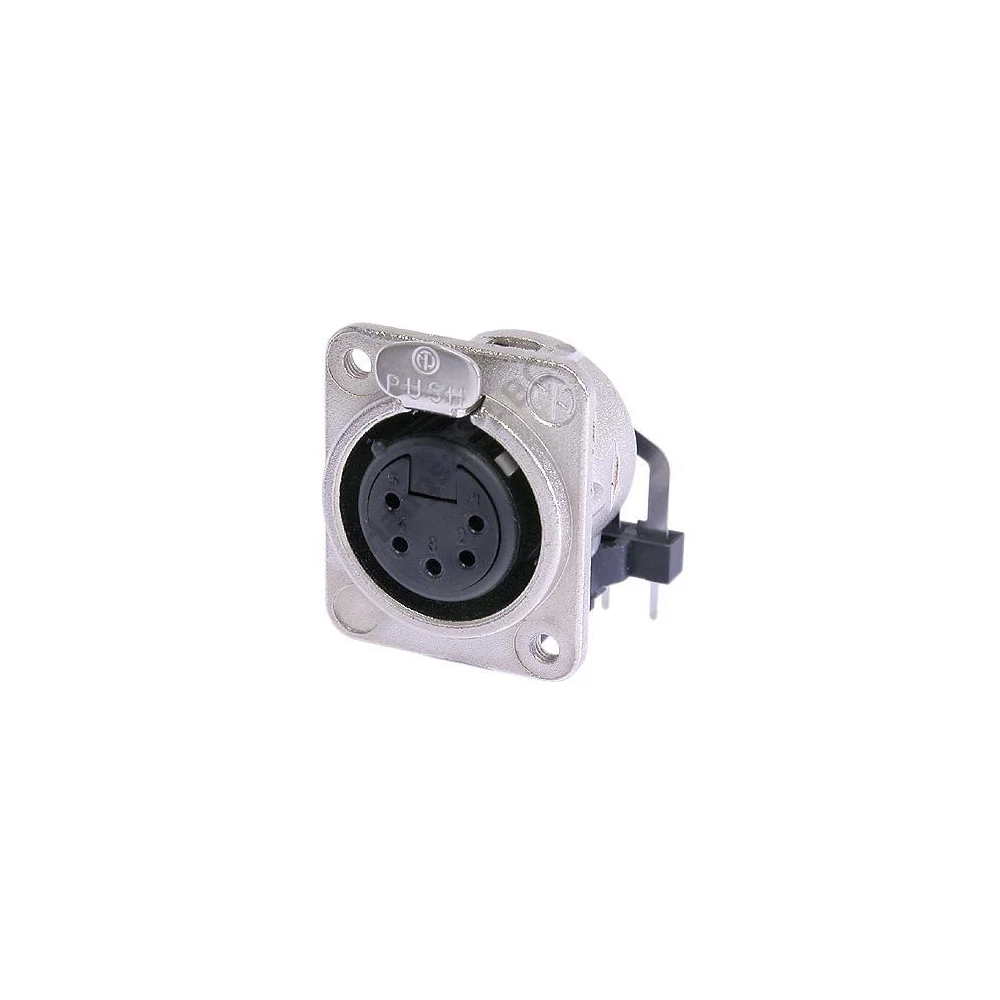 5 pólusú XLR aljzat, horizontális NYÁK-hoz, nikkel ház, ezüstözött érzékelők, rögzítés M3-as csavarokkal