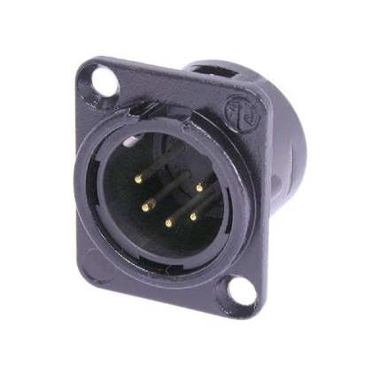 5 pólusú apa dugaszalj, forrasztható harangszigetelő, fekete fémház, arany érintkezők.