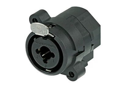3 pólusú, XLR anya dugaszalj, 6.3mm-es mono jack-el, kapcsolható érintkező nélkül, horizontális PCB foglalattal.