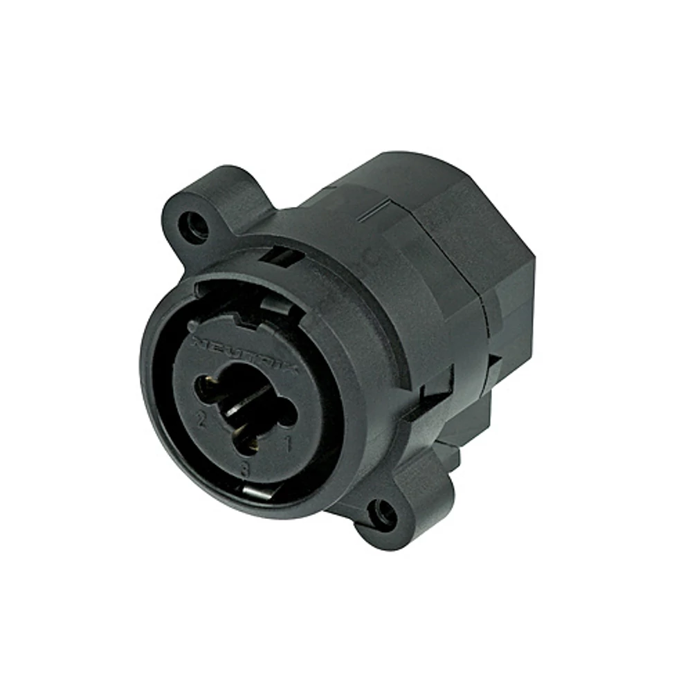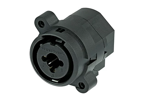 3 pólusú anya-XLR csatlakozó, 6,3mm sztereó jack-el, kapcsolható kontakt nélkül, horizontális PCB csatoló, visszatartó rugóval.