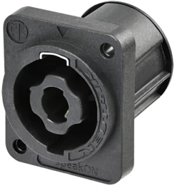 4 pólusú vázcsatlakozó, fekete D-méretű perem, martfuratú lyukak, vertikális PCB foglalat.