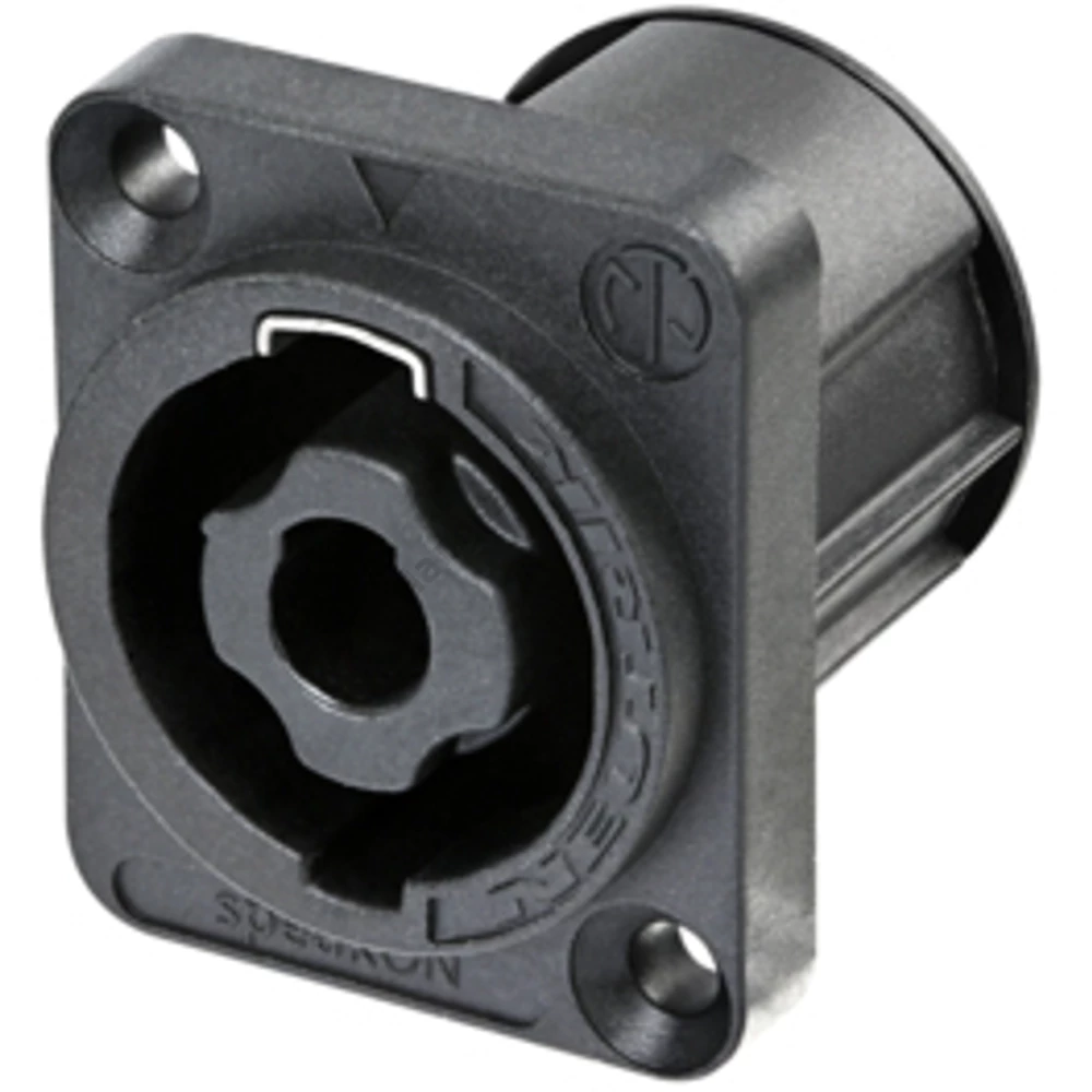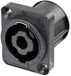 4 pólusú vázcsatlakozó, fekete D-méretű perem, martfuratú lyukak, vertikális PCB foglalat.