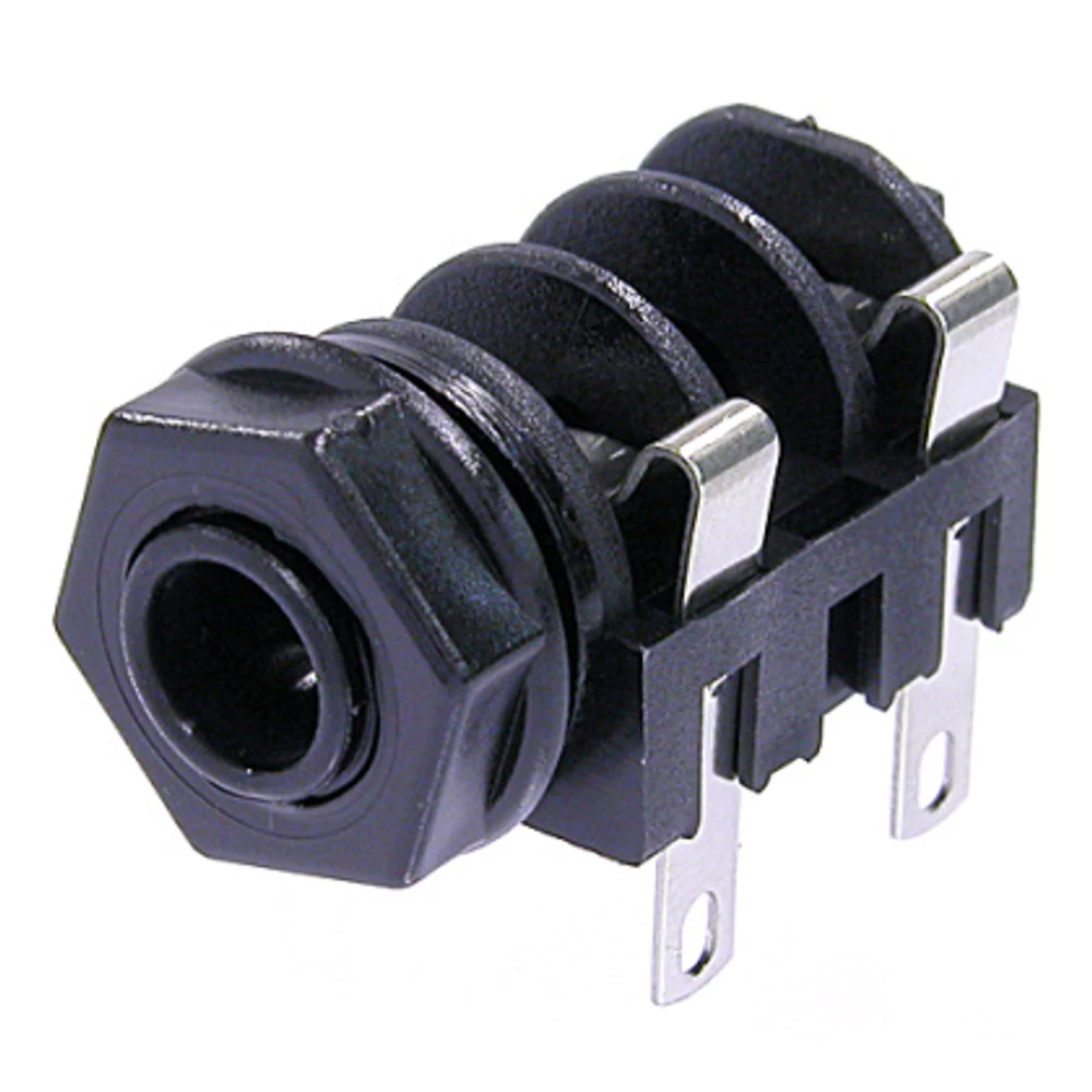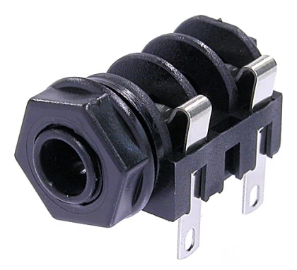 6.3mm mono jack, fordított, végig menetes orral és hagyományos forrasztófülekkel.