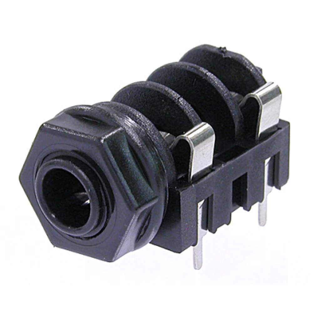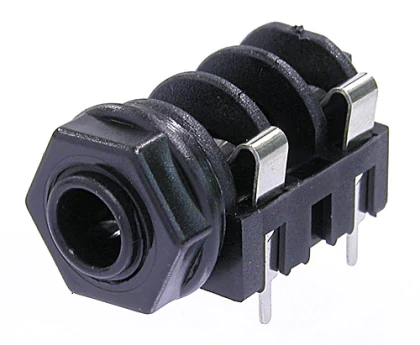 6.3mm mono jack, fordított, végig menetes orral és egyenes PCB tűkkel.
