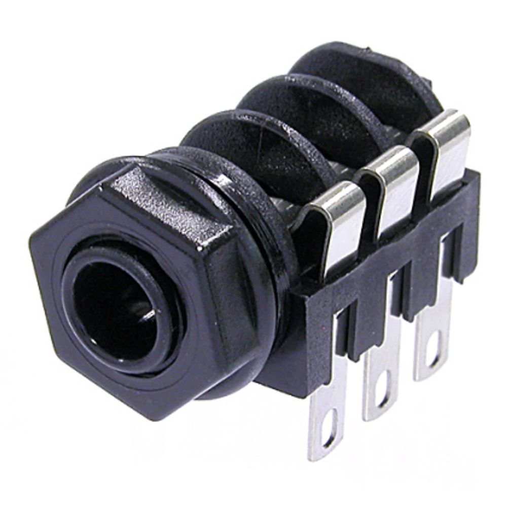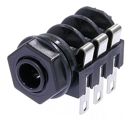 6.3mm sztereó jack, fordított, végig menetes orral és hagyományos forrasztófülekkel.