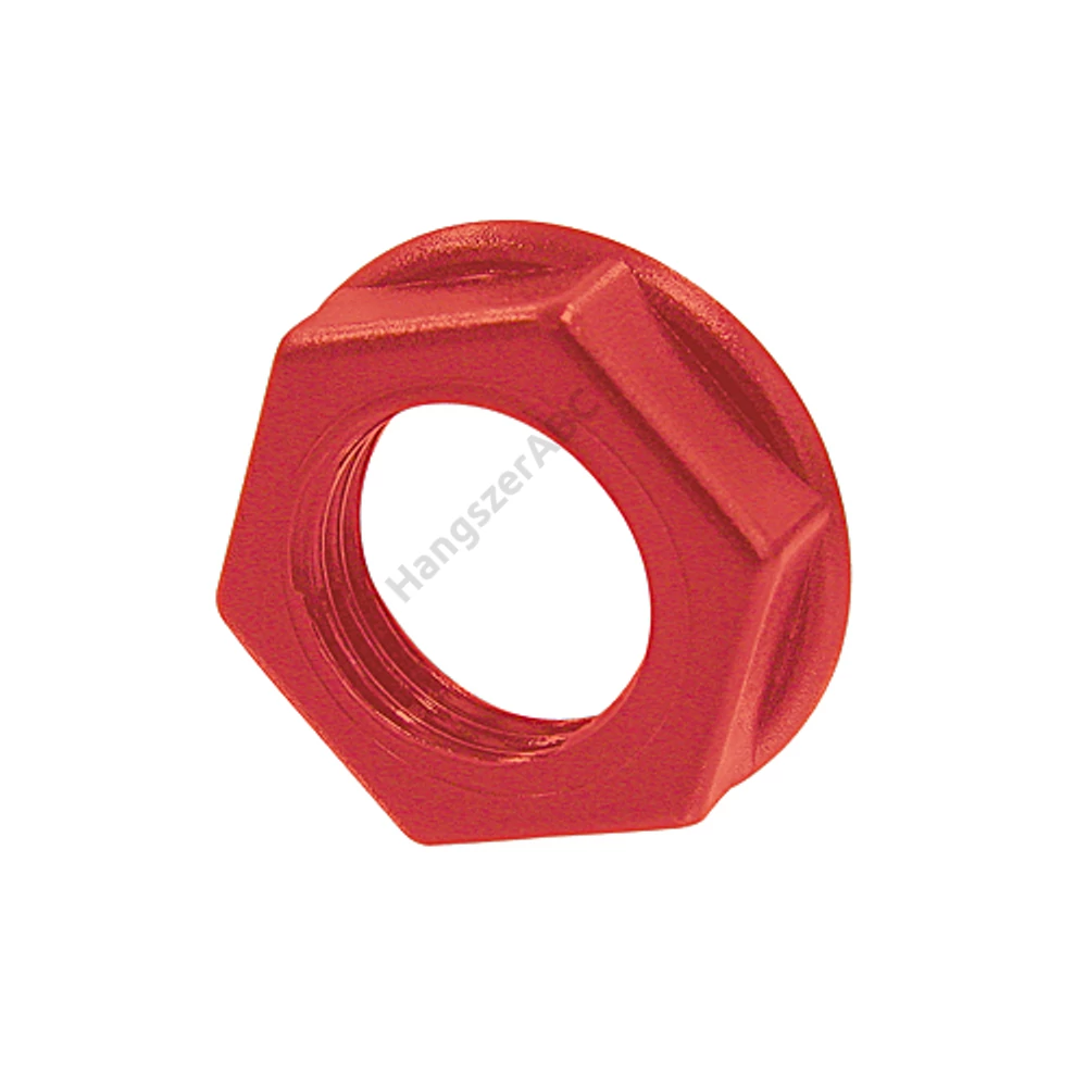Hatszögletű, piros műanyag csavar.
