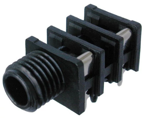 6.3mm-es mono jack, fordított, végig menetes orr, "köpeny-kontakt"/előlapi csatlakozás