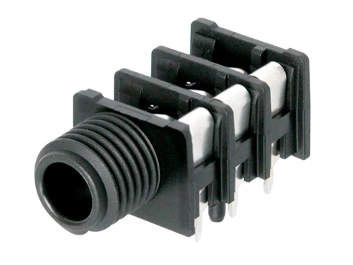 6.3mm-es sztereó jack, fordított, végig menetes orr, "köpeny-kontakt"/előlapi csatlakozás
