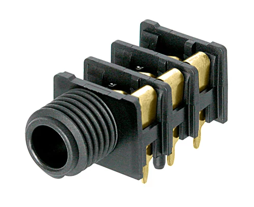 6.3mm-es sztereó jack, fordított, aranyborítású érintkezők, végig menetes orr, "köpeny-kontakt"/előlapi csatlakozás