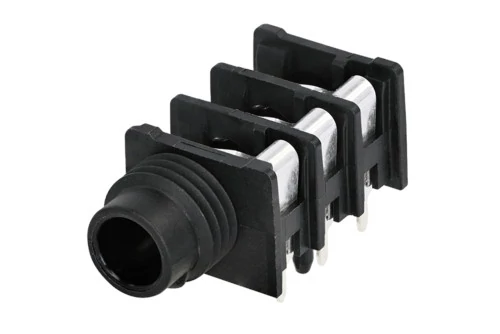 6,5mm -es sztereo jack, kapcsolható aljzat, menetes orral.