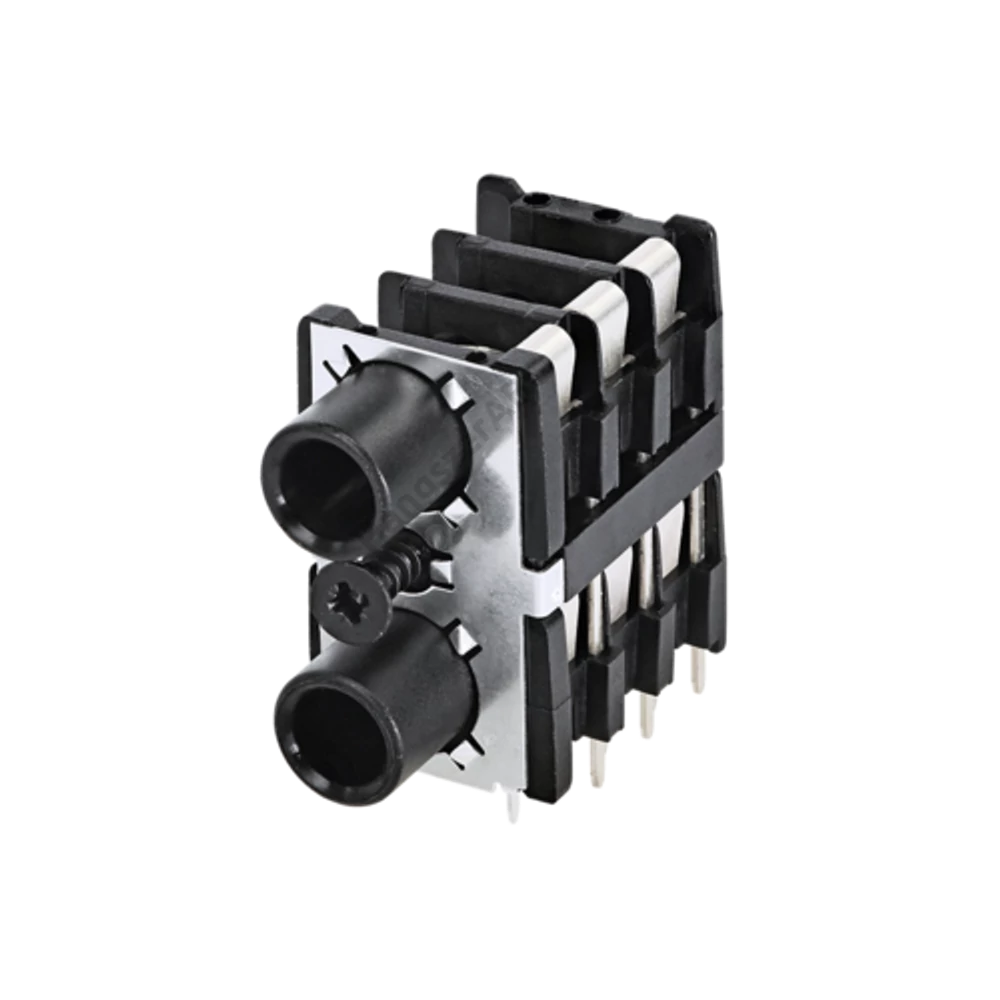 Sztereó dupla Jack 6,3mm aljzat, kapcsolható, rögzítőcsavarokkal együtt