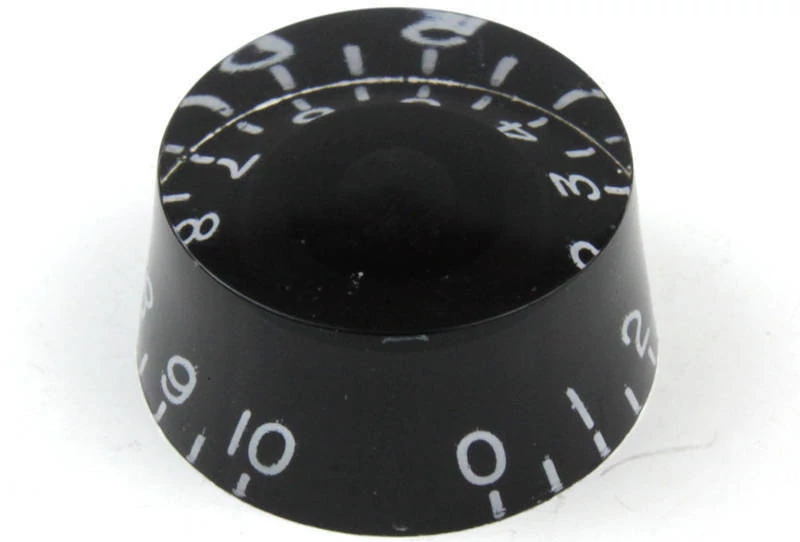 pótalkatrész: műanyag potméter sapka, kerek, áttetsző, értékek: 1-10, fekete szín, metrikus menet - 18 horony