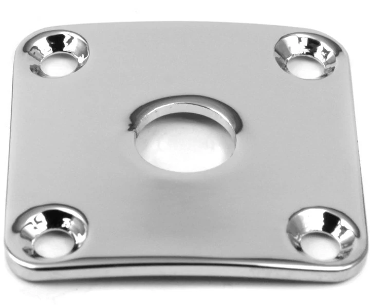 pótalkatrész: lemez jack bemenethez, Les Paul típusú gitárhoz, fém, ívelt, króm kivitel