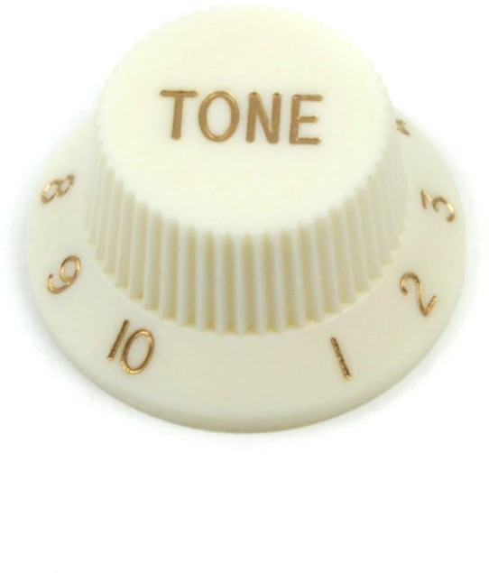pótalkatrész: harang alakú műanyag potméter sapka hangszínszabályzóra, értékek: 1-10, Aged White kivitel