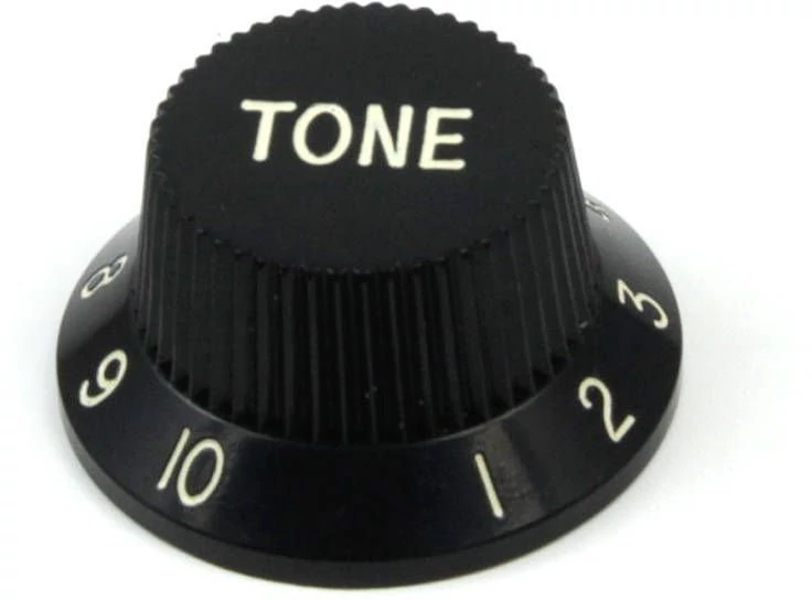 pótalkatrész: harang alakú műanyag potméter sapka hangszínszabályzóra, értékek: 1-10, fekete kivitel
