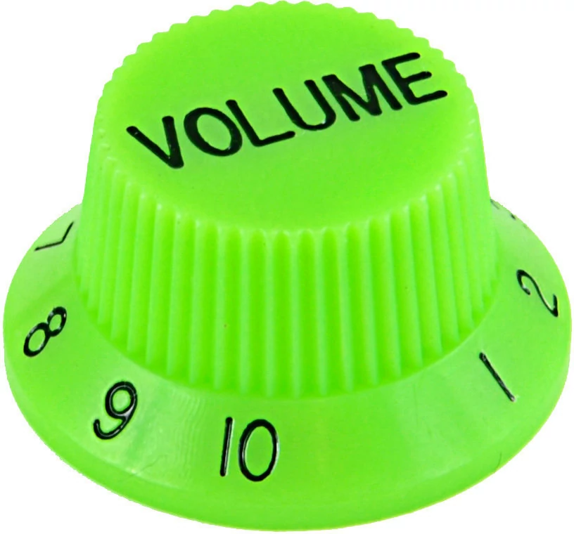 pótalkatrész: harang alakú műanyag potméter sapka hangerőszabályzóra, értékek: 1-10, zöld kivitel