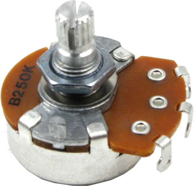 pótalkatrész: B250K potméter, lapos, 24 mm átmérő, 15 mm magasság, metrikus menet - 18 horony