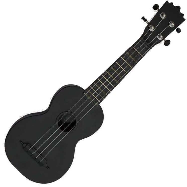 szoprán ukulele: műanyag, 12 érintő, fehér fogólap, nikkel szerelékek, matt fekete szín