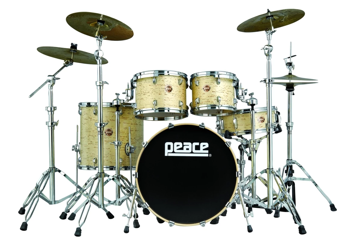 - Peaces top-of-the-line package kit, the DNA series resides at the crossroads of rugged and handsome, where professional quality meets affordability. A versatile kit designed to capture the quintessential modern drum set sound, the DNA series combines heavy duty series 800 hardware including both a straight and a boom stand, and 9-ply lacquered North American maple drums in a package that includes rims-mount toms, low-mass lugs, die-cast claws, and brass vents, among many stand-out features. The series is offered with chrome or black-trim hardware, and custom sizes and finishes are also available by special order. It aint broke, so we didnt fix it. Peaces DNA series has been a preferred choice by artists and endorsers for years, and its been heralded as a pro-level kit at a very affordable price by DRUM! Magazine. Shown in one of Peaces new finishes, black castle, a three color sparkle lacquer finish with a triple sparkle overlay belt that explodes chards of color under stage lighting.