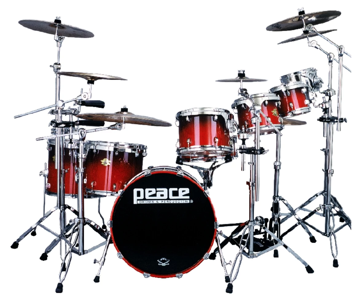 - Peaces top-of-the-line package kit, the DNA series resides at the crossroads of rugged and handsome, where professional quality meets affordability. A versatile kit designed to capture the quintessential modern drum set sound, the DNA series combines heavy duty series 800 hardware including both a straight and a boom stand, and 9-ply lacquered North American maple drums in a package that includes rims-mount toms, low-mass lugs, die-cast claws, and brass vents, among many stand-out features. The series is offered with chrome or black-trim hardware, and custom sizes and finishes are also available by special order. It aint broke, so we didnt fix it. Peaces DNA series has been a preferred choice by artists and endorsers for years, and its been heralded as a pro-level kit at a very affordable price by DRUM! Magazine. Shown in one of Peaces new finishes, black castle, a three color sparkle lacquer finish with a triple sparkle overlay belt that explodes chards of color under stage lighting.