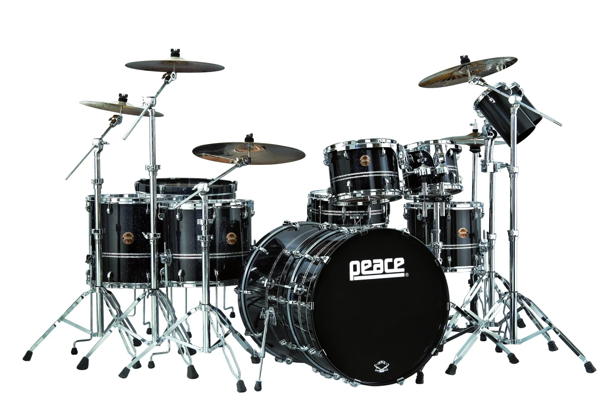 - Peaces top-of-the-line package kit, the DNA series resides at the crossroads of rugged and handsome, where professional quality meets affordability. A versatile kit designed to capture the quintessential modern drum set sound, the DNA series combines heavy duty series 800 hardware including both a straight and a boom stand, and 9-ply lacquered North American maple drums in a package that includes rims-mount toms, low-mass lugs, die-cast claws, and brass vents, among many stand-out features. The series is offered with chrome or black-trim hardware, and custom sizes and finishes are also available by special order. It aint broke, so we didnt fix it. Peaces DNA series has been a preferred choice by artists and endorsers for years, and its been heralded as a pro-level kit at a very affordable price by DRUM! Magazine. Shown in one of Peaces new finishes, black castle, a three color sparkle lacquer finish with a triple sparkle overlay belt that explodes chards of color under stage lighting.