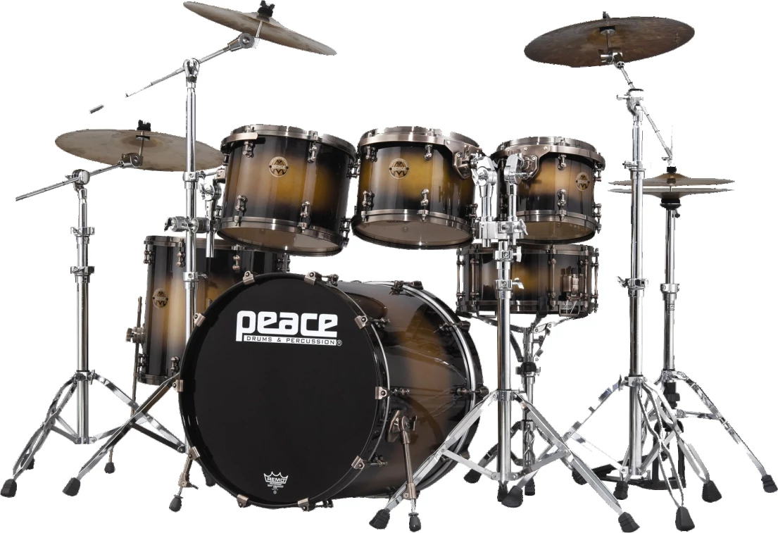 • Those with a passion for playing drums who demand the best have historically opted for maple shells. In keeping with that tradition, Peace's flagship Paragon series is constructed of 9-plies of the Canadian rock maple - the best of the best.As a discerning professional's choice and like other boutique drum kits in its class, Paragon series drums are customizable with respect to desired shell sizes - diameter and depth, and Astro Pop to Velvet Plum - is available, allowing players to create a totally personalized set-up.Additional notable features unique to the Paragon series include Peace's proprietary Patented Lug Integrated Floating Suspension (LIFTS) system and Peace's patented DA-121 and DA-122 Deus Microtube Lugs - not to tension rods like typical crescent mounts. This not only assures less stress to crucial tuning points, but it also makes changing heads while the tom is mounted possible.Great looks,fantastic sound and tech-friendly design, all add up to make these state-of.the-art drums. Modern Drummer magazine gave its seal of approval in a product review, stating: "These drums really sing...Peace has created a high-end kit that's priced lower than many comparable models form other manufacturers."Paragon drums are only offered as shell packs.Hardware from Peace's extensive catalog is available separately.