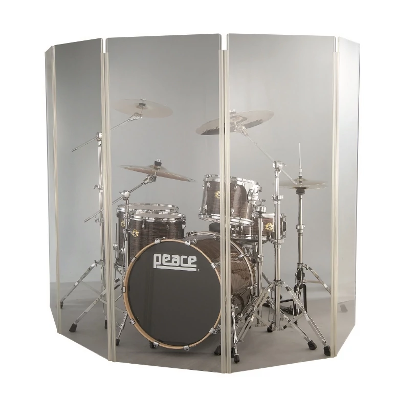 - In the current high tech era, the science of live sound has grown prodigiously with advances in PA technology. Backline amplification has shrunk as sound reinforcement has grown exponentially. This has led to a need to reduce drummer's volume on stage on many venues without stifling his creativity and energy. Hence, audio prophylaxis for the drum set. To a soundman's delight, the assembled shield-made of clear acrylic panels substantially isolates the drums acoustically from other instruments