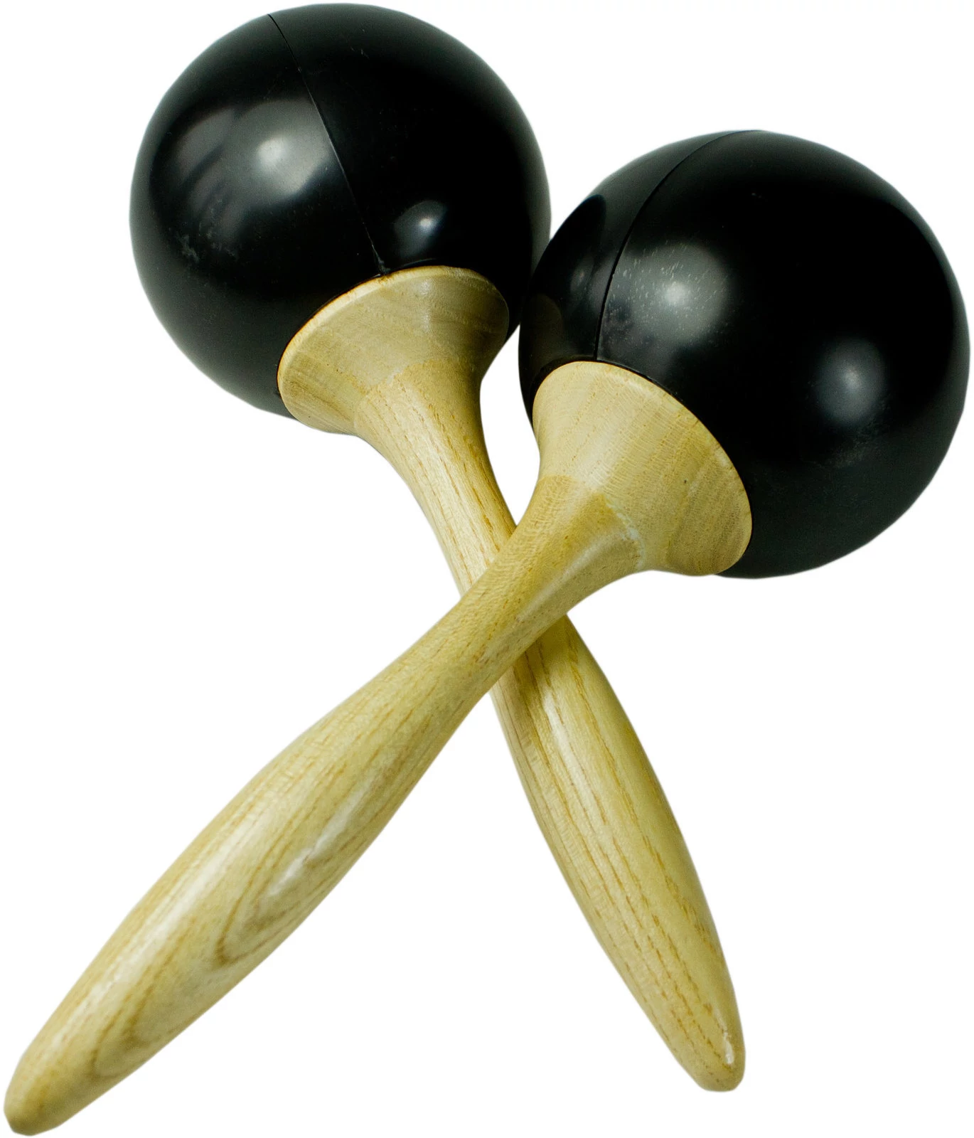 ütőhangszer: maracas gyerekeknek, fa nyél, műanyag fej, párban, fekete szín