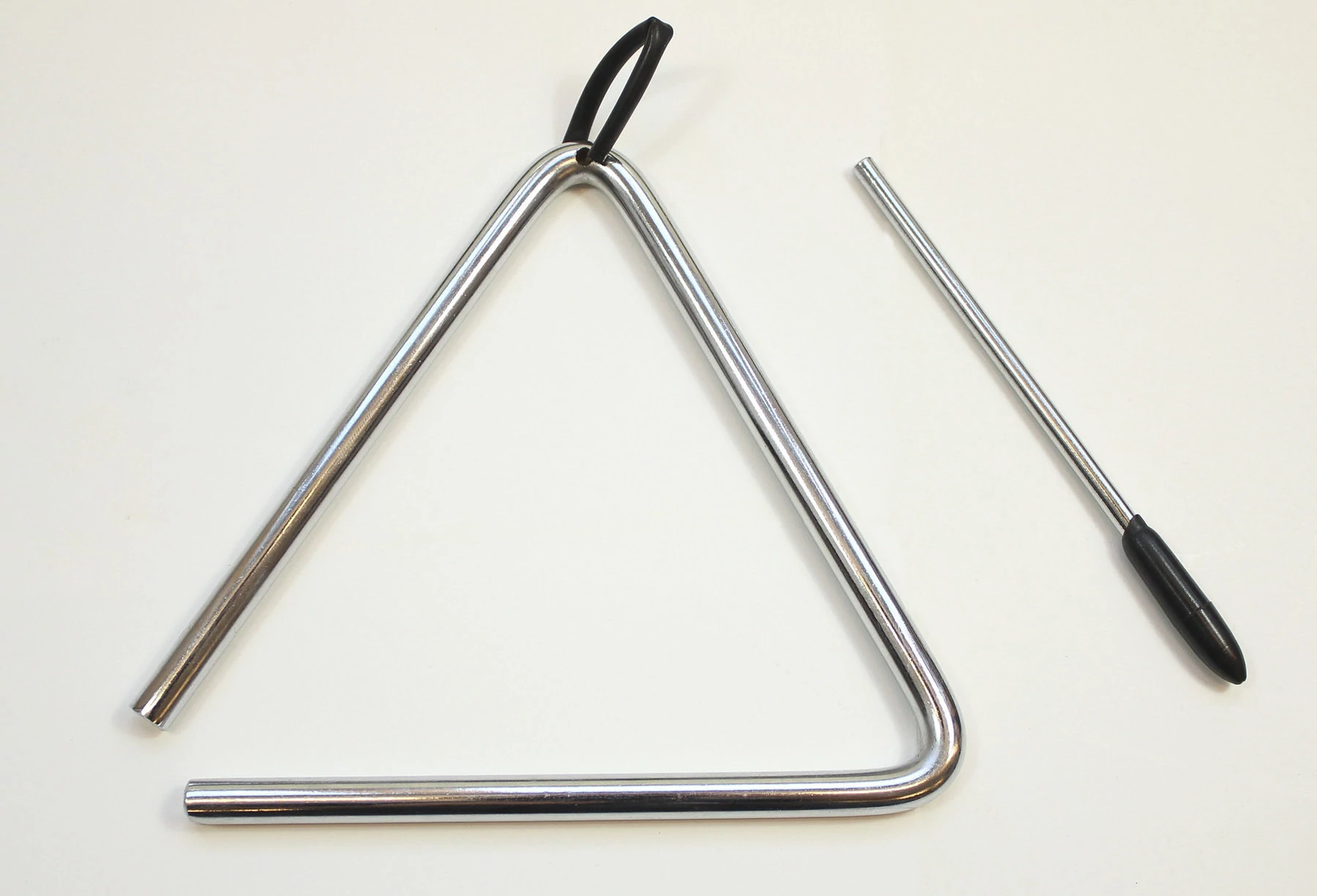 ütőhangszer: triangulum, gyermekeknek készült, 6˝ méretű, bőr fogóval, ütővel