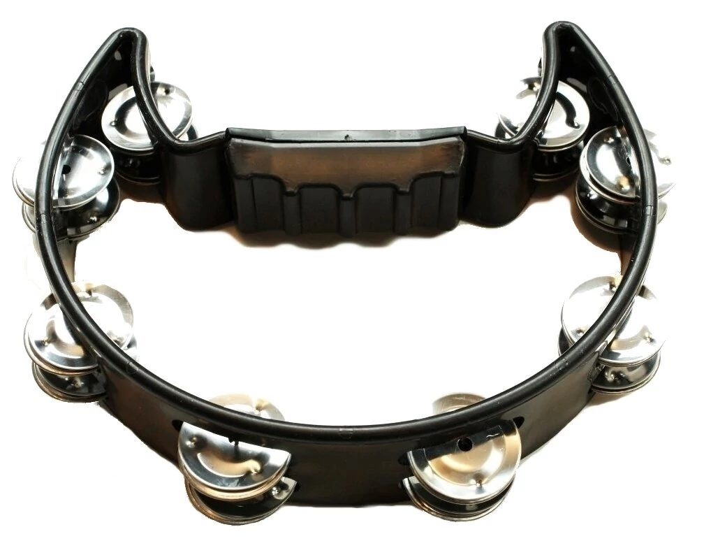 ütőhangszer: csörgőkarika, műanyag, félkör alakú kialakítás, 8 pár csörgőlemez, fekete