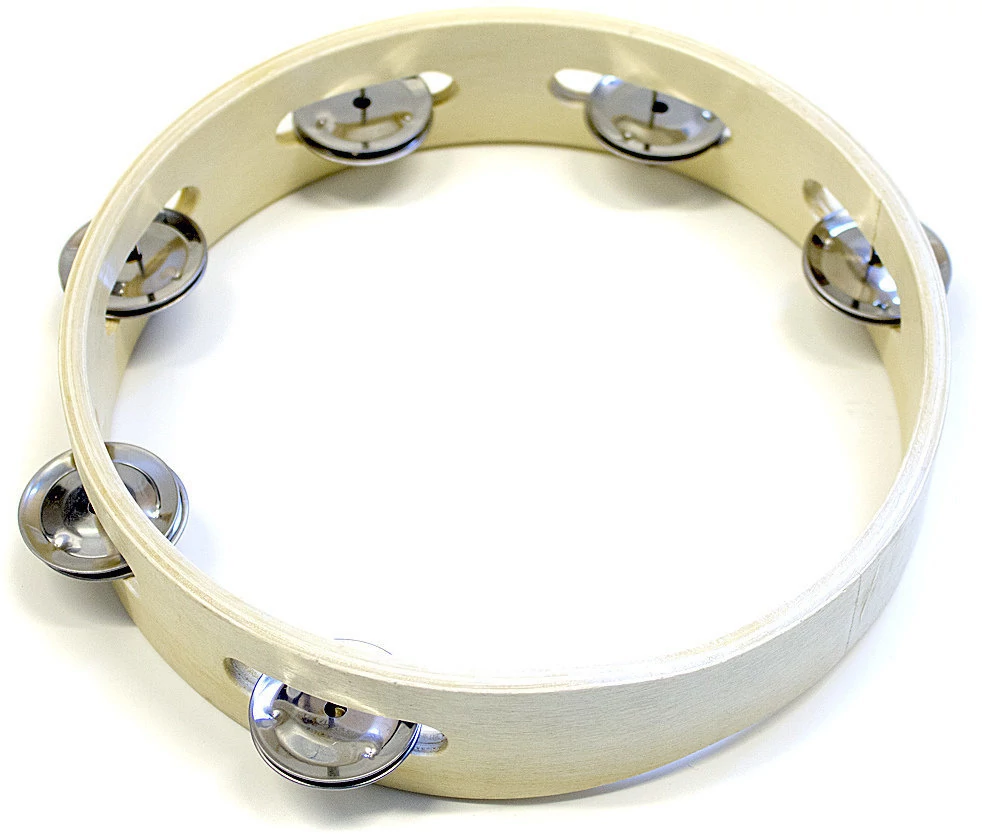 ütőhangszer: csörgőkarika gyerekeknek, 6 pár csörgő, egy soros, fa, 8" átmérő, natúr