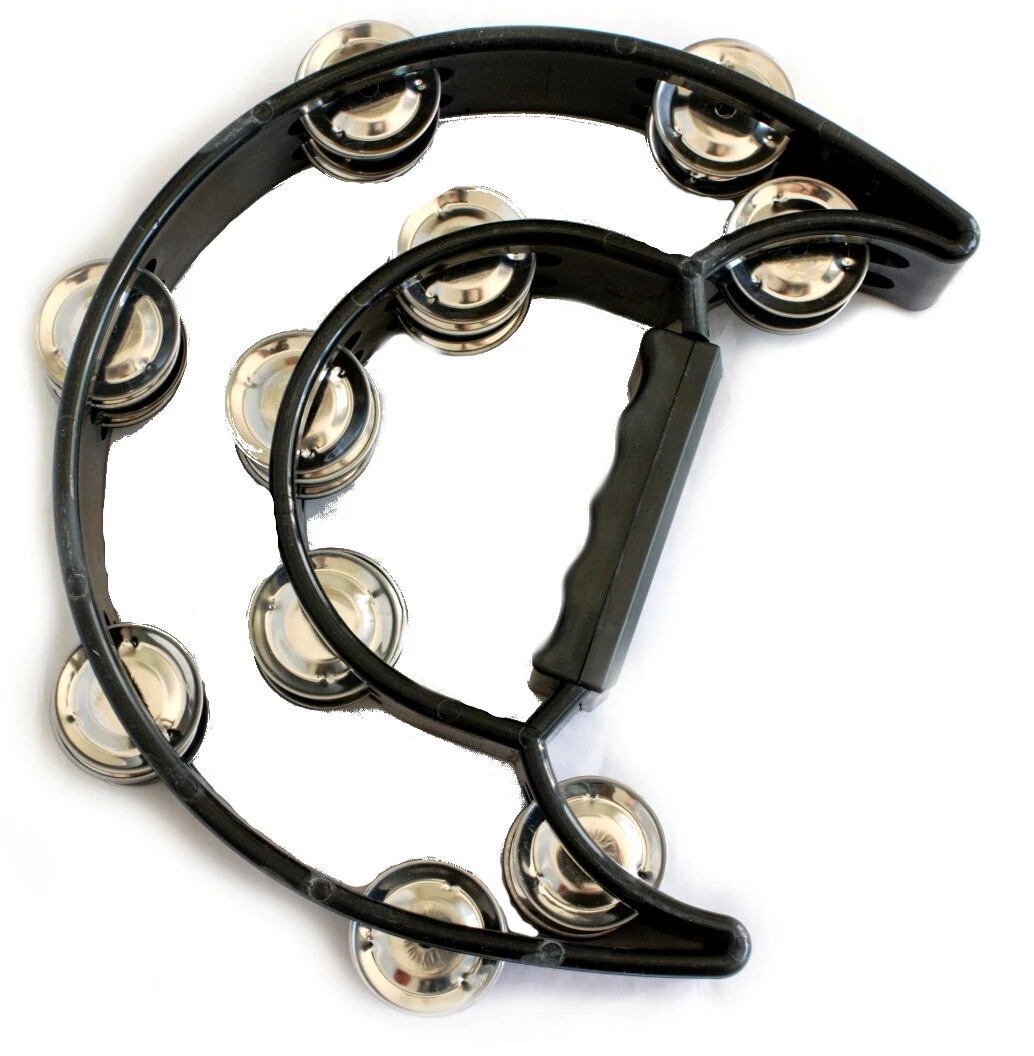 ütőhangszer: csörgőkarika, műanyag, félkör alakú kialakítás, 10 pár csörgőlemez, fekete