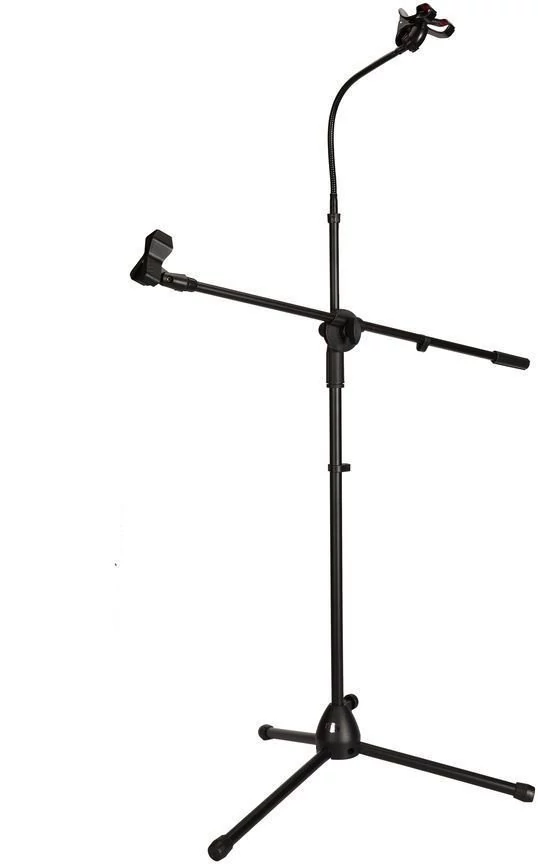 mikrofonállvány és egy mobiltelefonnal, Štipcové libanyak, háromlábú állványt a földön - fekete