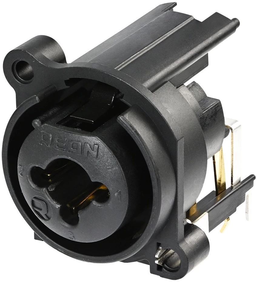 3P XLR - 6,3 mm jack COMBO csatlakozóaljzat, vízszintes NYÁK-ba ültethető, rugós rögzítő, kapcsoló érintkezők nélkül, ömleszett csomagolás