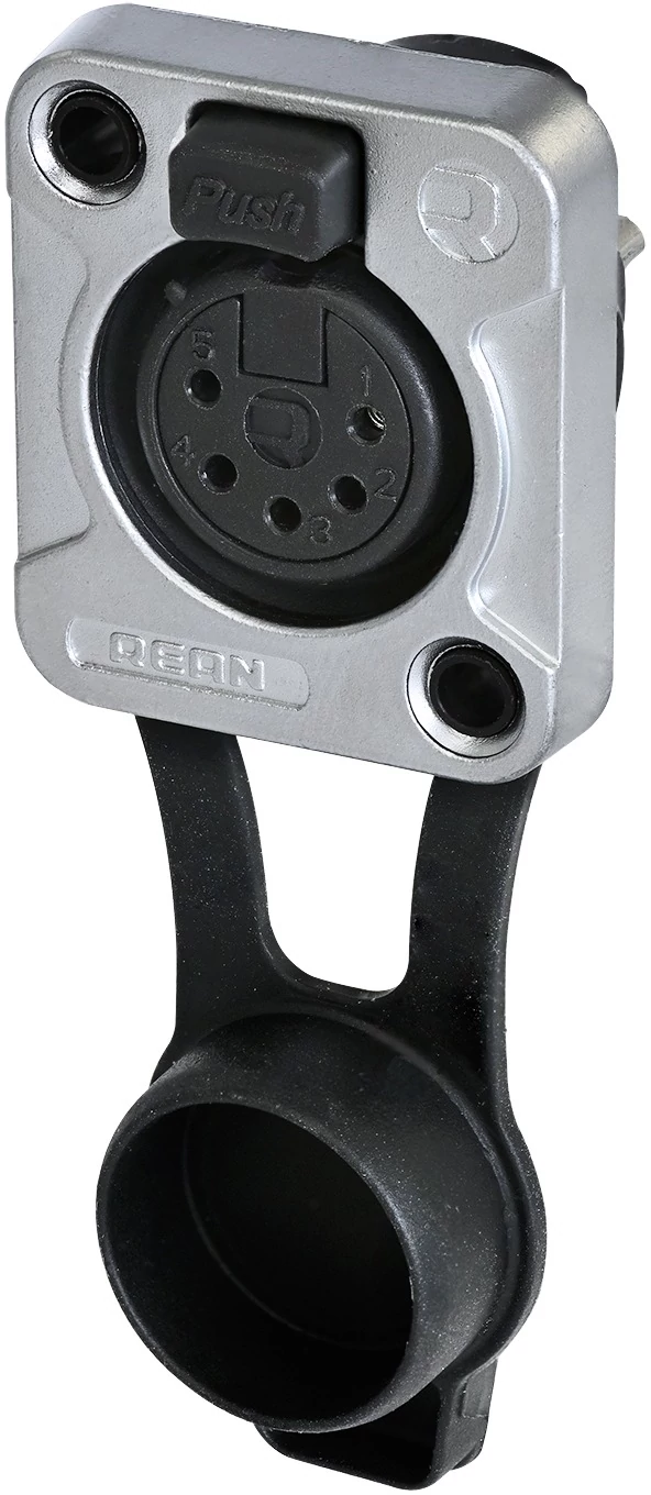 REAN XLR-Z sorozat. 5 pólusú XLR mama csatlakozóaljzat, IP65 védettség, króm bevonatú ház, ónozott értintkezők