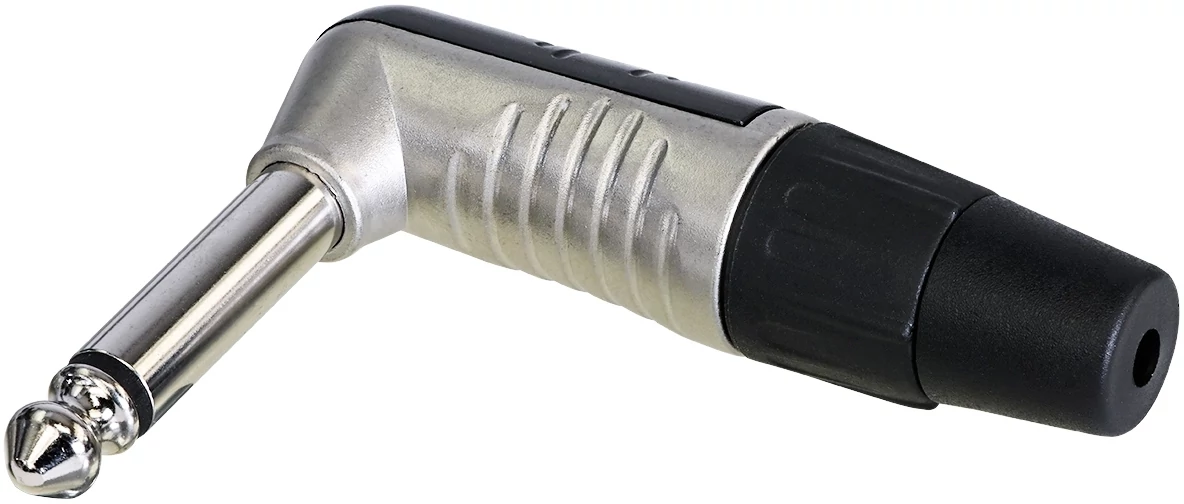 REAN Mono 6,3mm JACK, derékszögű krómozott ház, ónozott érintkezők, ömlesztett csomagolás