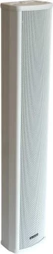 Fém fali hangfaloszlop, alumínium test, fehér fém fedőrács. Teljesítmény 20 W, feszültség 100/70V, frekvenciatartomány: 150 Hz - 15 k Hz, érzékenység: 95 dB, méretek: 106 x 75 x 405 mm, tömeg: 2,2 kg.
