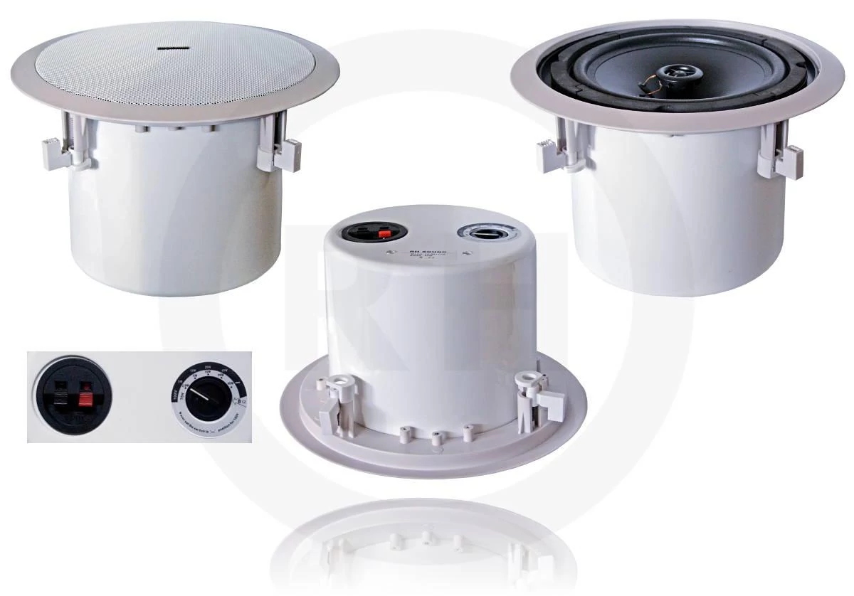 Álmenyezeti HI-FI kétutas hangfal, tűzellenes dobozzal. 8" (20cm) mély és 1" (25mm) magas hangszórók, terhelhetés 20/30W, 100V transzformátor, választható 5/10/20/40W 100V és 40W/8Ohm, érzékenység 91 dB/1W/1m, frekvencia tartomány 40Hz - 20kHz, szerelési nyilás ?240 mm, méretek: ?270x185mm,anyag: ABS/fém, fehér. Tömeg 3,1kg.