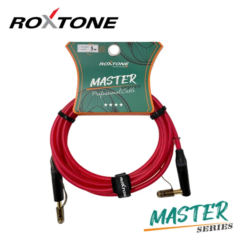 Roxtone MGJJ170L5-TRD Master series 6,3 Jack - 6,3 pipa Jack professzionális gitárkábel, 5m (transparent piros)