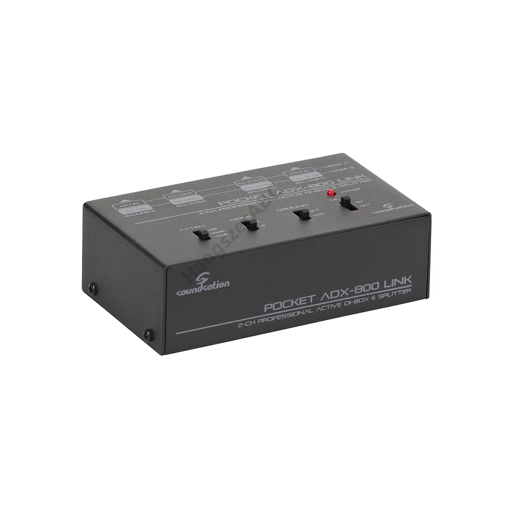 - Az ADX-800 LINK egy DI-Box (Direct Injection Box), ami max. két unbalanced audió jelet (Pl. elektromos és/vagy akusztikus gitár és basszusgitár, vonal jel, mint gitár előerősítő, billentyűzet, multi-effektek, számítógépek, stb.) balanced jellé XLR csatlakozón keresztül. Ez nemcsak lehetővé teszi azoknak a zavaroknak a csillapítását, amelyeket általában a kiegyensúlyozatlan kábelek gyűjtenek a közepes-hosszú távolságokban, hanem elosztóként is működik, maximum 3 kimenettel a Channel1 számára (2 XLR kimenet + 1 unbalanced 6,3mm Jack). Tápellátása a mellékelt hálózati adapterről, vagy a keverőből érkező +48V-os fantomtápról történhet. Háromállású bemeneti csillapítóval (0dB, 20dB, 40dB) rendelkezik -hogy az előerősítő fokozat minden jelhez beállítható legyen- és Lift Ground kapcsolóval, amely nagyon hasznos földhurok esetén. Az ADX-800 LINK lényegében nélkülözhetetlen eszköz a színpadon, a próbateremben és a hangstúdióban a zenészek, DJ-k és hangmérnökök problémáinak megoldására.