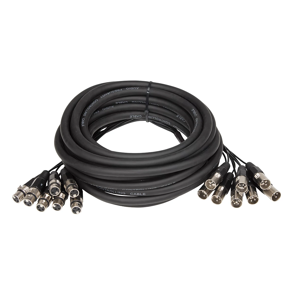 - 10 méteres szerelt multi-core kábel, 8 db 3-pólusú XLR mama-papa csatlakozóval