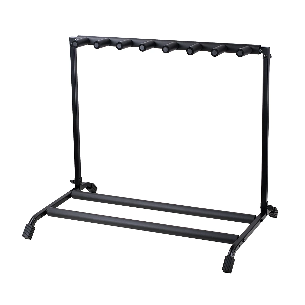 • Összecsukható gitárállvány 7 gitár számára. Fém keret, gumibevonat a karcolások ellen. Könnyű és stabil, erősített keret, könnyű szállítani és tárolni. 4 gumi lábbal rendelkezik, használható klasszikus, akusztikus, elektromos és basszusgitárhoz.