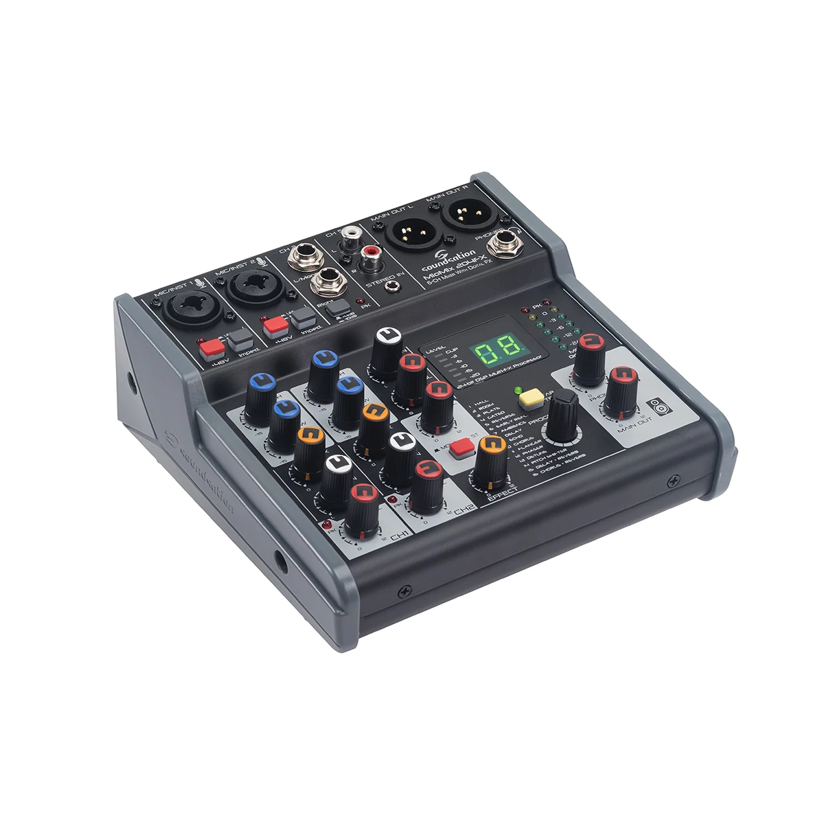 - A MIOMIX 204FX egy 6 csatornás mixer digitális multieffekttel ideális otthoni felvételekhez, élő fellépésekhez és podcast felhasználáshoz amik professzionális minőséget és maximális hordozhatóságot igényelnek. 2 mikrofonbemenet felszerelve zajmentes előerősítővel fogad minden fő hangforrást, mint a kondenzátor mikrofon, köszönhetően a +48V fantomtápnak, dinamikus mikrofon, vonal és nagy impedanciájú bemenet (gitár, basszusgitár, stb.). A sztereo vonalbemenetre csatlakoztathat billentyűzetet, CD lejátszót, DJ konzolt, tabletet, okostelefont, stb. A 24-bit/48kHz digitális effekt 16 általánosan használt beállítással rendelkezik (Hall/Room/Plate, Reverb, Delay, Echo, Chorus, stb.) és a TAP-Tempo funkcióval tökéletesítheti az előadását és szabályozhatja két paraméterét minden effektnek. Nélkülözhetetlen és megbízható eszköz minden audio alkalmazáshoz.